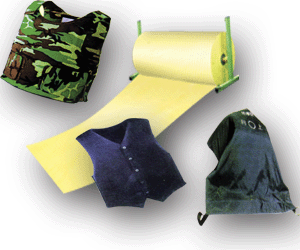 新研制成功的芳纶防弹布、浸胶芳纶帆布,广泛适用于防弹衣系列、防爆毯、防刺服、防割手套等防护用品的制作。 |