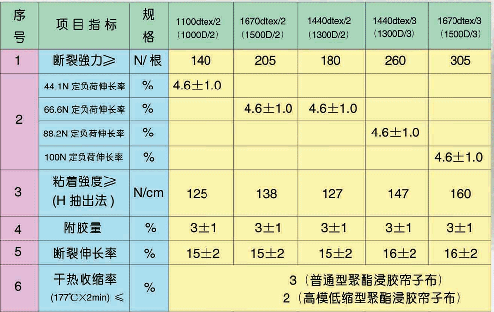 生产的普通以及高模低收缩涤纶帘子布系列是制造子午胎、轻卡胎、V型带等橡胶制品的新型骨架材料。