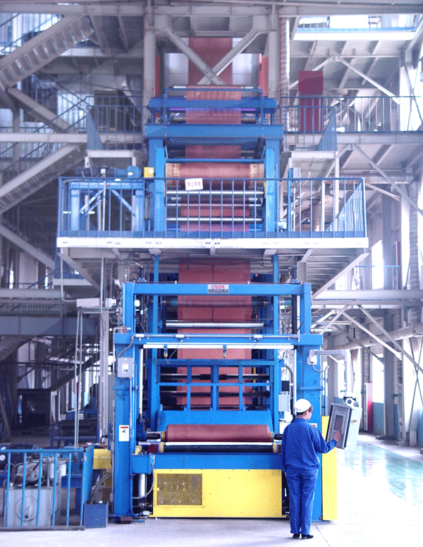 公司自美国引进的第二条双浴法浸胶生产线,浸胶速度达到120米/分钟,速度快、效率高。该生产线主要适用于子午线轮胎用高性能高模低缩涤纶帘子布及高性能橡胶输送带用帆布的研发生产。