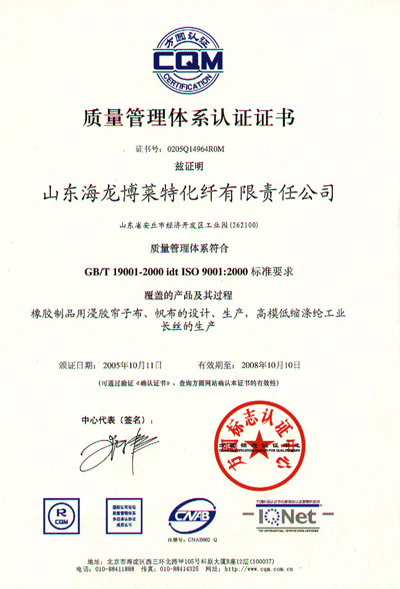 质量是信誉的基石,是品牌的基础,公司全面贯彻 “抓质量、重服务、创品牌”的质量方针和“简捷、高效、规范、受控”的管理理念,严格按ISO9000质量体系运行,公司98年通过质量体系认证; 2005年8月份顺利通过了“ISO9001质量管理体系、ISO14001环境管理体系、GB/T28001职业健康安全”三合一体系认证。